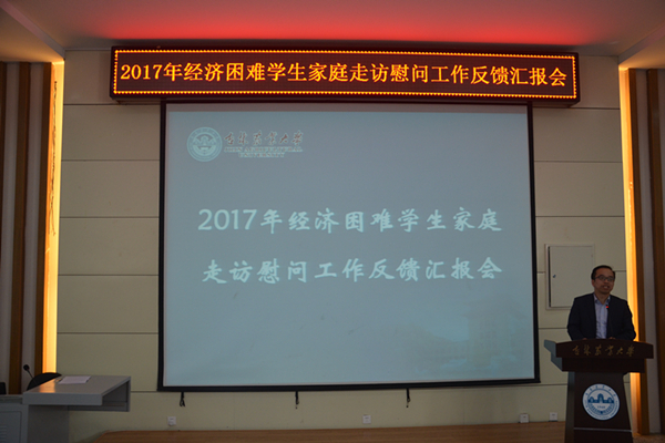 5月3日,学校召开了2017年经济困难学生家庭走访慰问工作反馈汇报会。学校党委副书记毛彦军出席了会议。各走访慰问工作小组组长从走访慰问工作的基本情况、发现的问题及工作的建议三个方面进行了汇报。听取汇报后,毛彦军指出,对经济困难学生家庭进行走访慰问工作是实现精准资助、家校共育、情感交流、自我教育的有效途径,希望相关部门对本次走访慰问工作进行全面的梳理、总结,将好的经验和做法制度化,真正实现精准资助、资助育人、育人成才。