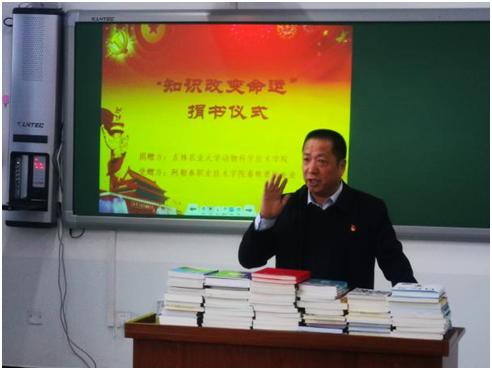 近日,我校动物科学技术学院向学校援建的阿勒泰职业技术学院畜牧兽医专业捐赠了价值3400余元的畜牧兽医专业相关图书80余册,有效的缓解了该校专业图书资源不足的问题,丰富了师生的课余文化生活。