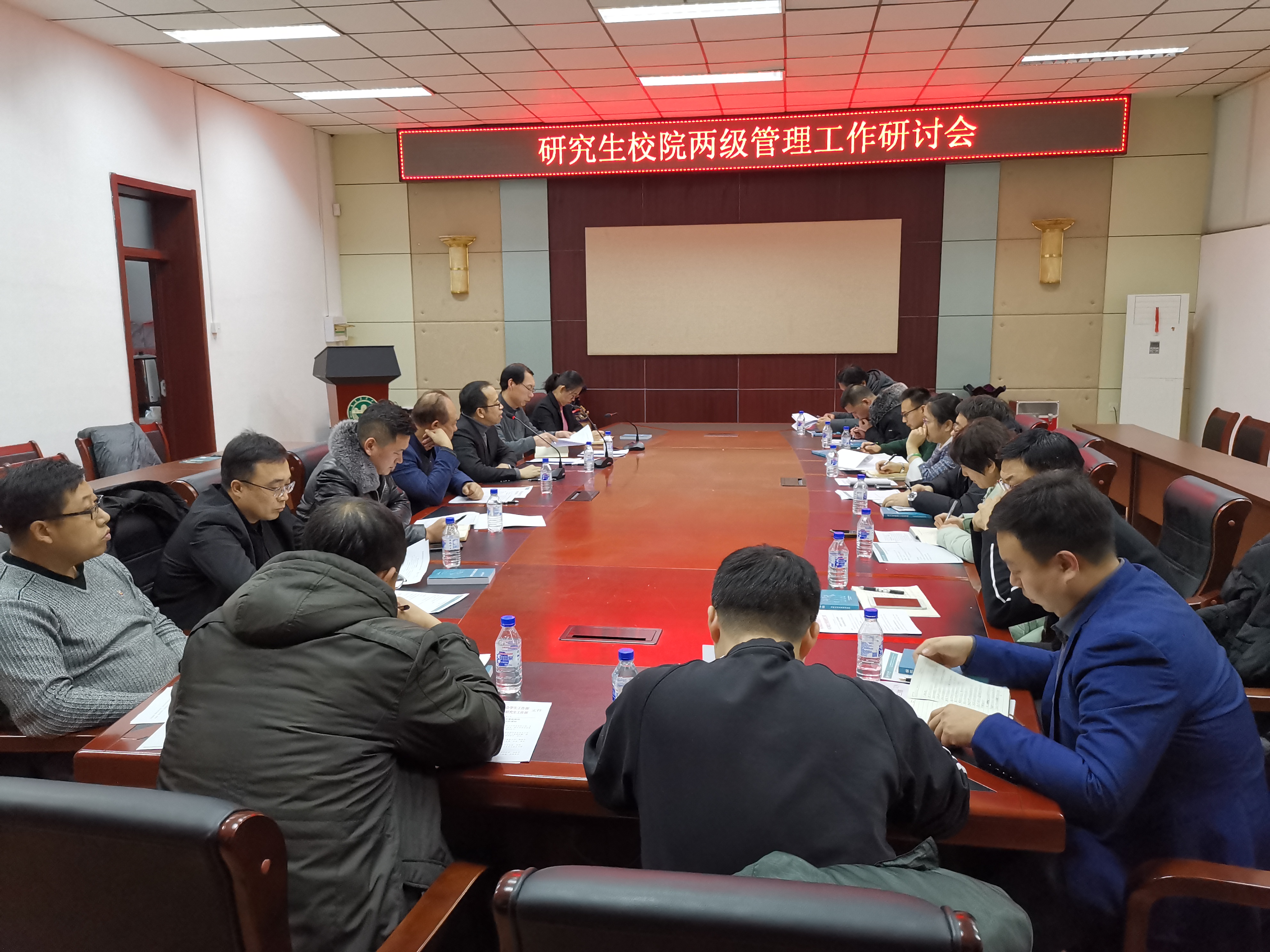 12月31日下午,学校在研究生院二楼会议室召开研究生校院两级管理工作研讨会。校党委副书记毛彦军主持会议,副校长刘景圣出席会议并讲话。
