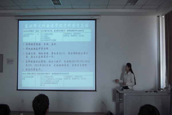 近年来,外国语学院实施英语专业精细化管理工程,致力于提高教学质量,增强学生综合素质,把鼓励和指导学生考研作为一项重要工作来抓。为做好毕业生考研辅导及服务工作,学院专门成立了“双e(翼)空间”考研辅助工作室。该工作室除积极为学生开放考研专用复习教室,提供专人辅导外,每年都精心策划一系列的活动,如考研动员大会、专家讲座,考研指导及“一带一路”考研系列经验交流会等。外国语学院2017届考研率达到了38.27%,在专业没有硕士点的情况下位列省内同类院校的前列,考取学校包括北京第二外国语学院、吉林大学、山东大学、东北师范大学、哈尔滨工程大学、延边大学、东北财经大学等全国共17所985、211及省部共建重点高校。