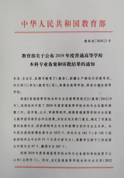 日前,教育部下发了《教育部关于公布2019年度普通高等学校本科专业备案和审批结果的通知》,公布了2019年度普通高等学校本科专业备案和审批结果,确定了新增备案本科专业、新增审批本科专业和调整学位授予门类或修业年限专业名单等。吉林农业大学为加快新农科建设,培养知农爱农新型人才,全国首办菌物科学与工程、农药化肥2个本科专业,吉林省首办智慧农业1个本科专业;为主动优化调整专业结构,推进学科专业一体化建设,新办社会工作、酿酒工程、林学3个本科专业;为适应国家一流专业建设,推动专业认证与评估,调整动物医学修业年限为五年制。