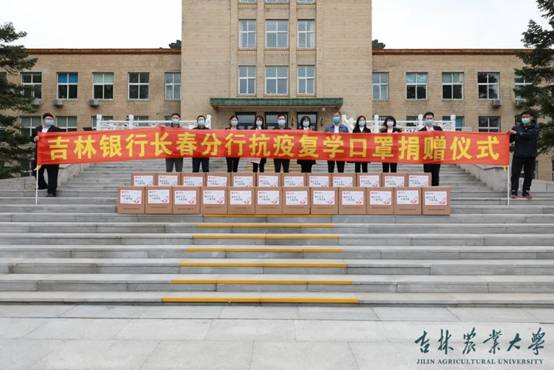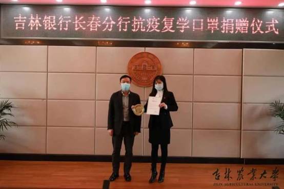 5月11日下午,吉林银行长春分行向我校捐赠医用口罩的捐赠仪式在学校主楼中四楼会议室举行。吉林银行长春净月潭支行行长姜翰、我校副校长杜锐出席捐赠仪式。