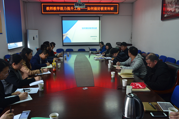林琳围绕教研课题和教研奖励的类别、教育科研申报中存在的问题、做好教育科研的对策三个方面对如何做好教育科研作了细致讲解,并鼓励广大一线教师积极参加教研工作,不断提升教学质量。