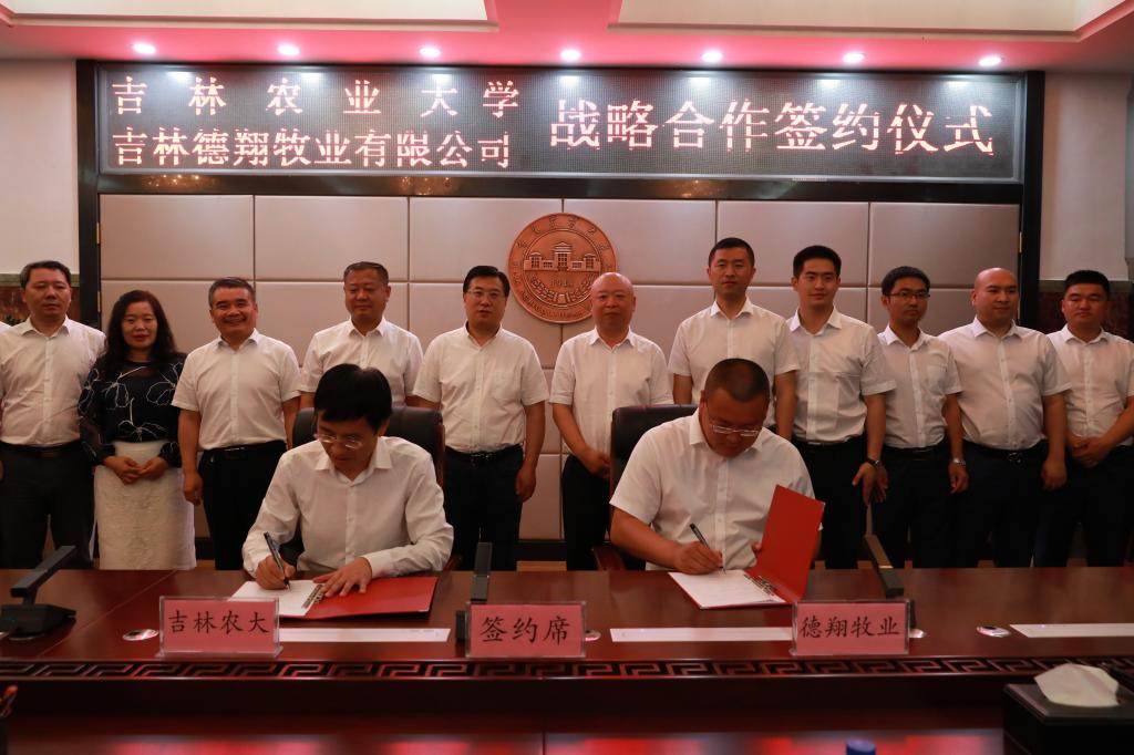 7月1日,学校在行政楼中四楼会议室举行吉林农业大学与吉林德翔牧业有限公司校企战略合作协议签约仪式。吉林德翔集团董事长王世强,我校校长冯江出席了签约仪式。签约仪式由副校长张越杰主持。