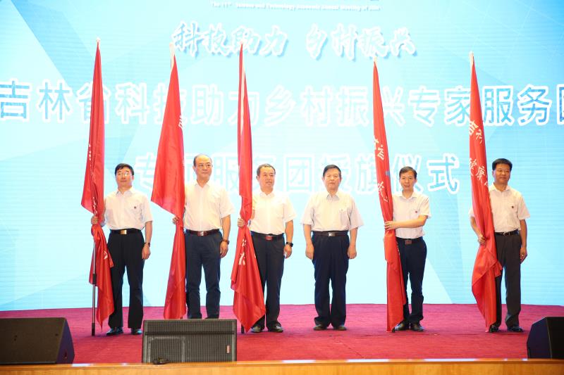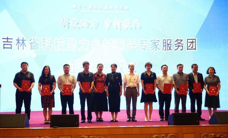 开幕式上举行了吉林省科技助力乡村振兴专家服务团授旗仪式和证书颁发仪式。李玉为绿色农业、高效农业、智慧农业、特色农业、健康医疗五个专项服务团的团长、副团长授旗,省科协有关领导为专家服务团代表颁发了证书。我校刘景圣等5名团长上台接旗,杜锐、王连君教授、于合龙教授和王春凤教授等10名专家代表服务团上台接受证书,我校85名专家入选专家服务团。