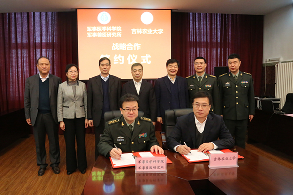 军事兽医研究所、中国农科院特产研究所及学校有关单位负责同志参加了签约仪式。