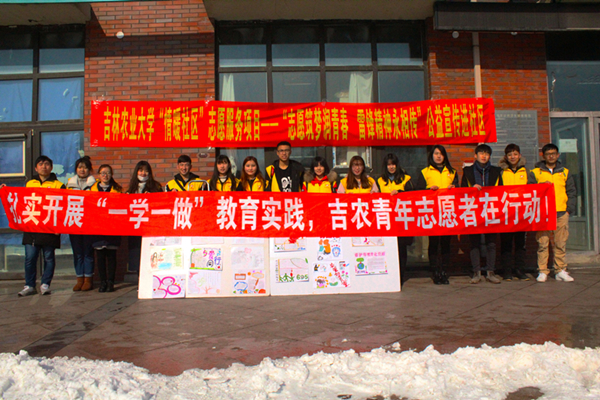 近日,在纪念毛泽东等老一辈无产阶级革命家号召全国人民“向雷锋同志学习”54周年之际,恰逢中国共产党吉林农业大学第十二次代表大会胜利召开,为深入贯彻落实团中央“一学一做”教育实践活动,积极培育和践行社会主义核心价值观,校团委、校“绿野”青年志愿者联合会以“志愿之光,情暖社区”为主题,组织全校12个本科学院及研究生院的千余名青年志愿者深入长春市永兴街道所辖8个社区开展了多种形式的志愿服务活动。