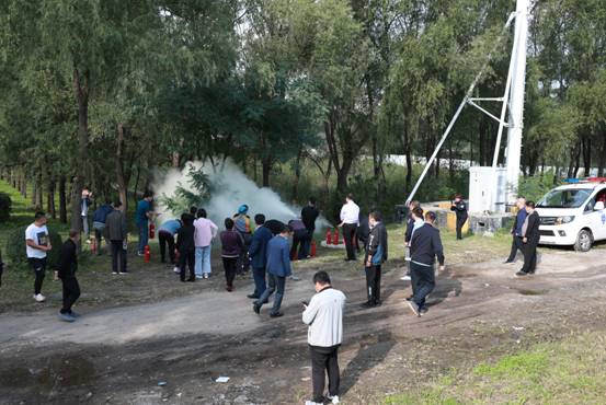 会后,学校保卫处组织全体参会人员进行了消防实地演练。