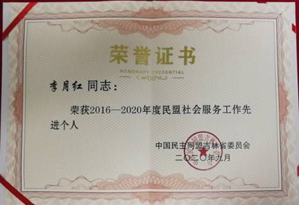 9月24日,民盟吉林省委在长春市召开2016—2020年度民盟社会服务工作先进集体、先进个人表彰会。我校民盟荣获2016-2020年度民盟社会服务工作先进集体,盟员李月红荣获民盟社会服务先进个人。