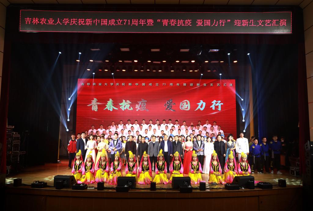 10月21日,吉林农业大学庆祝新中国成立71周年暨“青春抗疫 爱国力行”迎新生文艺汇演在鲲鹏学生文化活动中心举行。校领导席岫峰、张越杰、徐文生、刘双山、毛彦军出席活动现场并观看了文艺汇演。