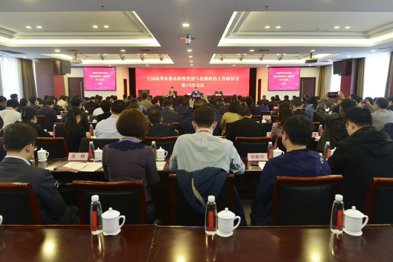 全国46所农林水院校主要领导及分管党建和宣传思想工作的校领导、党委办公室主任、党委组织部部长、党委宣传部部长、党委统战部部长、纪委副书记、党委教师工作部部长、党委学生工作部部长、党委研究生工作部部长、团委书记、马克思主义学院(思政部)负责人等参加会议。