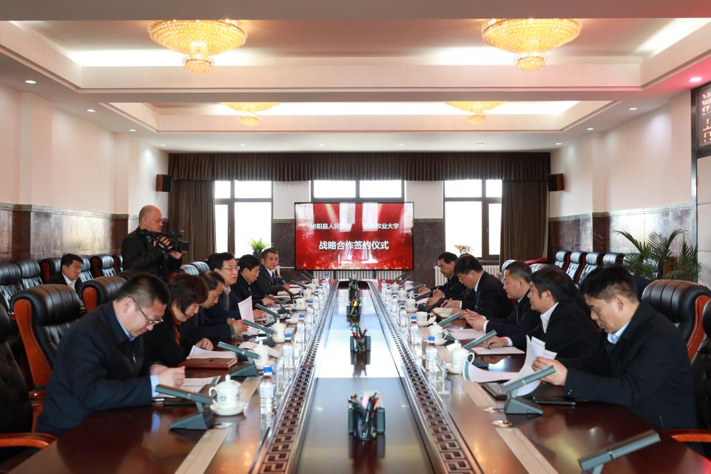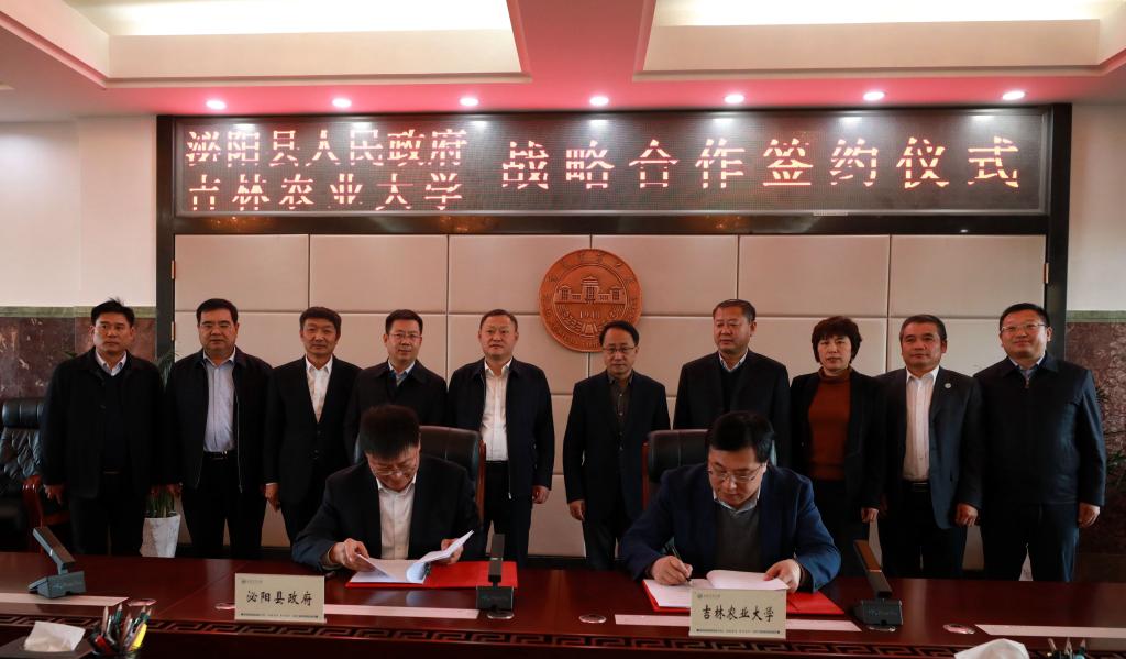 仪式上,冯江、魏华伟分别代表吉林农业大学、泌阳县人民政府签署战略合作协议。