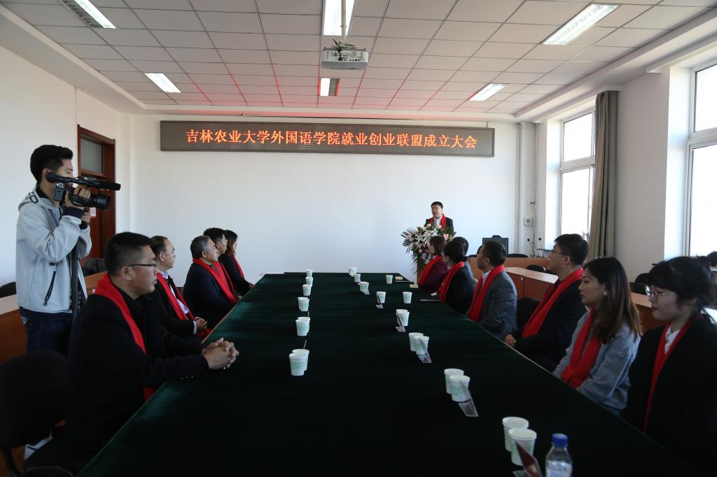 11月7日,由学校招生就业工作处主办,外国语学院承办的吉林农业大学首家院级就业创业联盟——外国语学院就业创业联盟成立大会在社科楼外国语学院会议室召开。