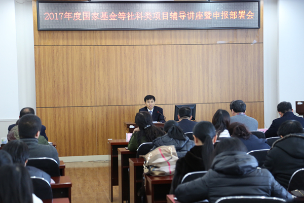 1月10日,学校在十五号楼会议室召开2017年度国家基金等社会科学类项目申报部署会,副校长张越杰主持会议并讲话。