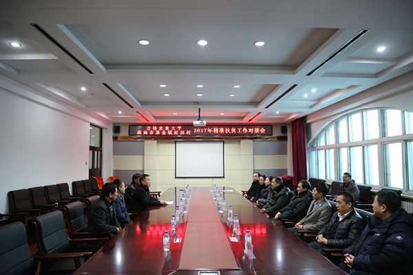 1月11日,吉林农业大学与洮南市那金镇好田村2017年精准扶贫工作对接会在学校十一号楼召开。校领导席岫峰、秦贵信、陈光、张越杰、徐文生、王志中、毛彦军,那金镇党委副书记程德龙,好田村党支部书记姜旭波出席了会议。