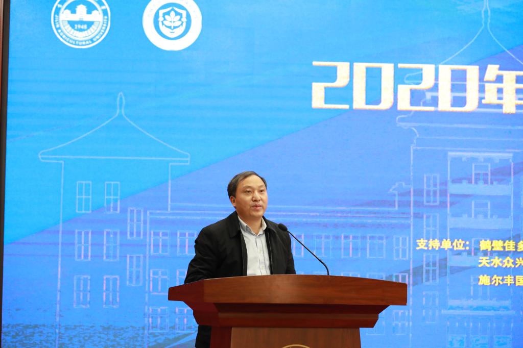 冯江在致辞时代表学校向与会代表表示欢迎。他指出,植物保护学科是学校传统优势学科,植物保护学院自2018年成立以来,坚持对标一流,全力打造植保高峰学科,并取得了可喜的进步。他表示,全国植保学科的院士、领导与专家相聚北国春城,就植物保护学科发展集思广益,本次高峰论坛将推进农业院校之间学科交流合作新模式的发展,见证兄弟院校之间的深厚情谊,既是一次高层次、高水平、高质量的学术盛宴,也是学校向各位院士、各位专家学习和交流的难得机遇。