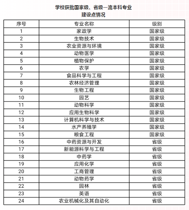 近日,根据《教育部办公厅关于公布2020年国家级和省级一流本科专业建设点名单的通知》(教高厅函〔2021〕7号),我校生物工程、园艺、动物科学、应用生物科学、水产养殖学、粮食工程、计算机科学与技术等7个专业获批“2020年度国家级一流本科专业建设点”,5个专业获批“2020年度省级一流本科专业建设点”。自教育部启动一流本科专业建设“双万计划”以来,我校共获批国家级一流本科专业建设点15个,省级一流本科专业建设点9个,占目前学校本科招生专业总数的41%。