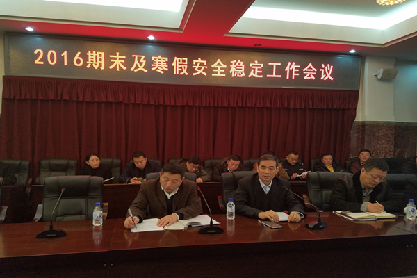 会议由校长助理曲政文主持。秦贵信强调,各单位要高度重视安全稳定工作,召开专项安全工作会议,逐级落实安全责任;要不断提高安全意识,对本次安全会上提出的安全隐患,要认真落实整改;要做好大学生安全教育,提醒他们注意交通安全、网络安全、饮食安全、出行安全,防止出现各类安全事故;要充分发挥安防系统的防护功能。职能部门要担负起各自的职责,确保两节、寒假期间学校安全稳定。
