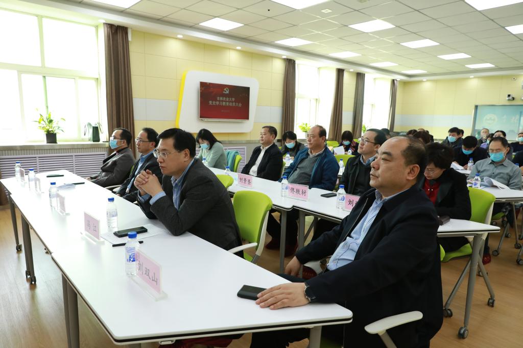 冯江在主持讲话时,就贯彻落实会议精神,推动党史学习教育开展提出要求。他指出,一要提高政治站位,加强思想引领。全校各级党组织和广大党员干部要深入学习习近平总书记重要讲话精神,在中国共产党的百年奋斗历程中深刻理解“教育是国之大计、党之大计”的重要论断,深刻认识“为党育人、为国育才”的时代责任,充分发挥党史“以史鉴今、资政育人”的作用,把党史学习教育融入育人全过程,化为培养“听党话、跟党走”时代新人的思想自觉和行动自觉。二要强化组织领导,压实政治责任。全校各级党组织要充分运用以往主题教育的成功经验,结合学校实际,精心组织安排,确保取得实效。领导干部要发挥好领学研学促学作用,严格落实专题学习、政治引领、实践活动、专题组织生活会等环节任务要求,抓在经常,融入日常,坚持规定动作和自选动作相结合,开展特色鲜明、形式多样的学习教育,不断增强党史学习教育的针对性和实效性。三要坚持统筹兼顾,实现两个促进。要坚持统筹协调,把党史学习教育同学校中心工作紧密结合起来,切实做到“两手抓、两手硬、两促进、两不误”。要把学习党史同总结经验、观照现实、推动工作结合起来,把学习成效转化为工作动力和成效,防止学习和工作“两张皮”。他强调,要切实做到把党史学习教育成果转化为破解学校发展难题的实招硬招,转化为推动学校高质量发展的实践成效,形成学习教育与中心工作相互促进、相得益彰的良好格局,不断激发师生的奋斗热情和担当精神,奋力开创学校事业发展的新局面。