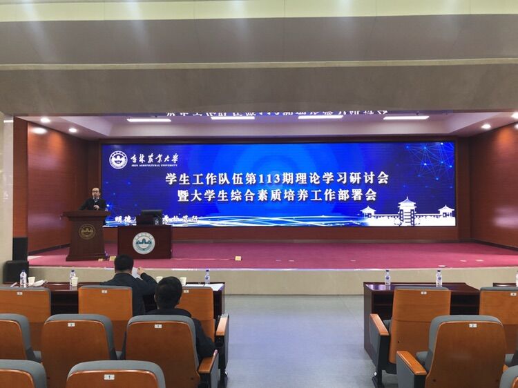 4月22日下午,学校在综合教学楼一楼国际报告厅召开学生工作队伍第113期理论学习研讨会暨大学生综合素质培养工作部署会。校党委副书记毛彦军主持会议。