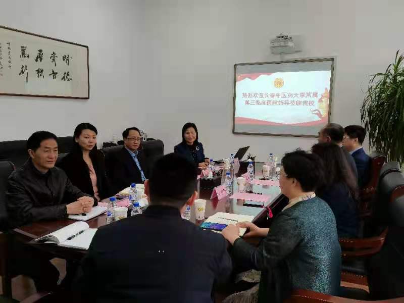 田洪赋详细介绍了长春中医药大学附属第三临床医院的办院理念、规模、医护队伍及科室设置等,经过一年多的运行,医院已经成为净月区首家且规模最大的三级公立中医综合性医院,希望在满足净月百姓就医需求的同时更好的为周边大学提供专业化服务。他针对我校工会在之前联系三附院所提出的为教职工开辟绿色就医通道等相关诉求,拟确定未来可与我校开展三方面的合作,一是在医疗保健服务上,为我校师生建立绿色通道,优化就医流程;二是为我校校医院工作人员提供学习深造渠道,共同融合发展;三是为我校学生搭建志愿服务平台和科研项目平台。