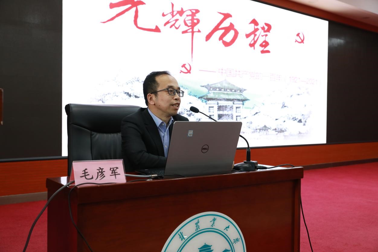 5月14日,学校党委副书记毛彦军在综合楼一楼报告厅以《光辉的历程——中国共产党的一百年》为题为大学生上了一堂思政课。