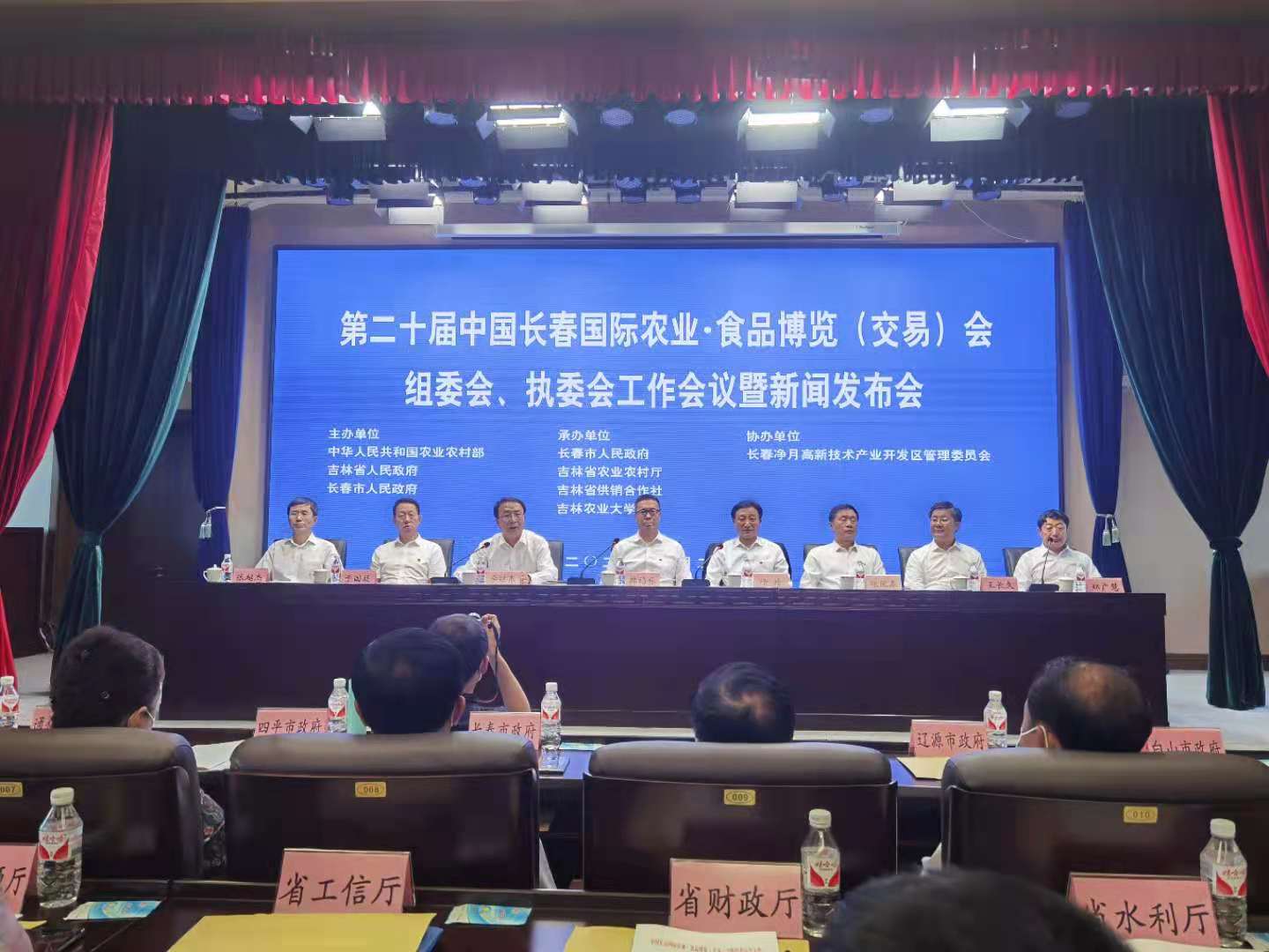 6月23日,第二十届中国长春国际农业·食品博览(交易)会组委会、执委会工作会议暨新闻发布会在长春农博园召开。副省长韩福春、长春市委副书记徐晗分别在会上就做好农博会展览等相关工作作了讲话。副校长张越杰代表学校作为农博会承办单位出席了发布会。