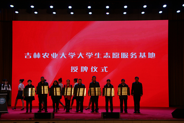 会上,牟大鹏和席岫峰为在2016年暑期社会实践工作中取得突出业绩的团体及个人代表授予“特殊贡献奖”荣誉证书;张越杰向永兴街道所辖八个社区授予“吉林农业大学大学生志愿服务基地”铭牌;校团委书记彭雨石与永兴街道党工委副书记、办事处主任杨逸圆共同签署社区共建志愿服务项目协议。