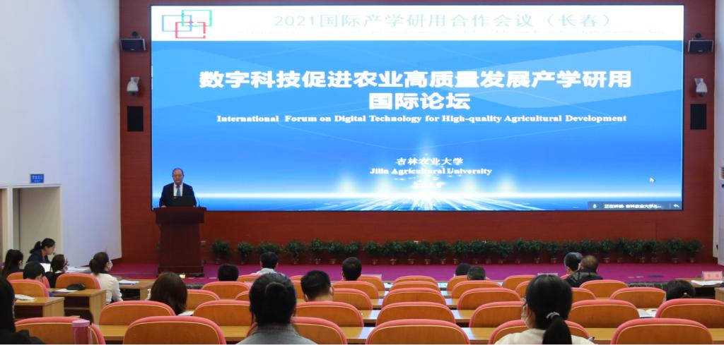 9月17日,由我校智慧农业研究院及“111计划”学科创新引智基地承办的2021年国际产学研用合作会议(长春)—数字科技促进农业高质量发展国际论坛在图书馆报告厅举办。副校长刘景圣出席并致辞。