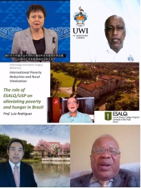 会上,联合国粮农组织驻华代表(FAO)卡洛斯·华生、联合国南南合作办公室副主任(UNOSSC)王晓军、联盟海外成员新西兰梅西大学校长JanThomas教授、泰国农业大学副校长Kampanat Pensupar教授、巴西圣保罗大学LuizRodriguez教授、特多西印度大学圣奥古斯汀分校食物与农业学院院长Wayne Ganpat、以及中国农业大学驻坦桑尼亚协调员Ernest Mkongo通过线上致辞。