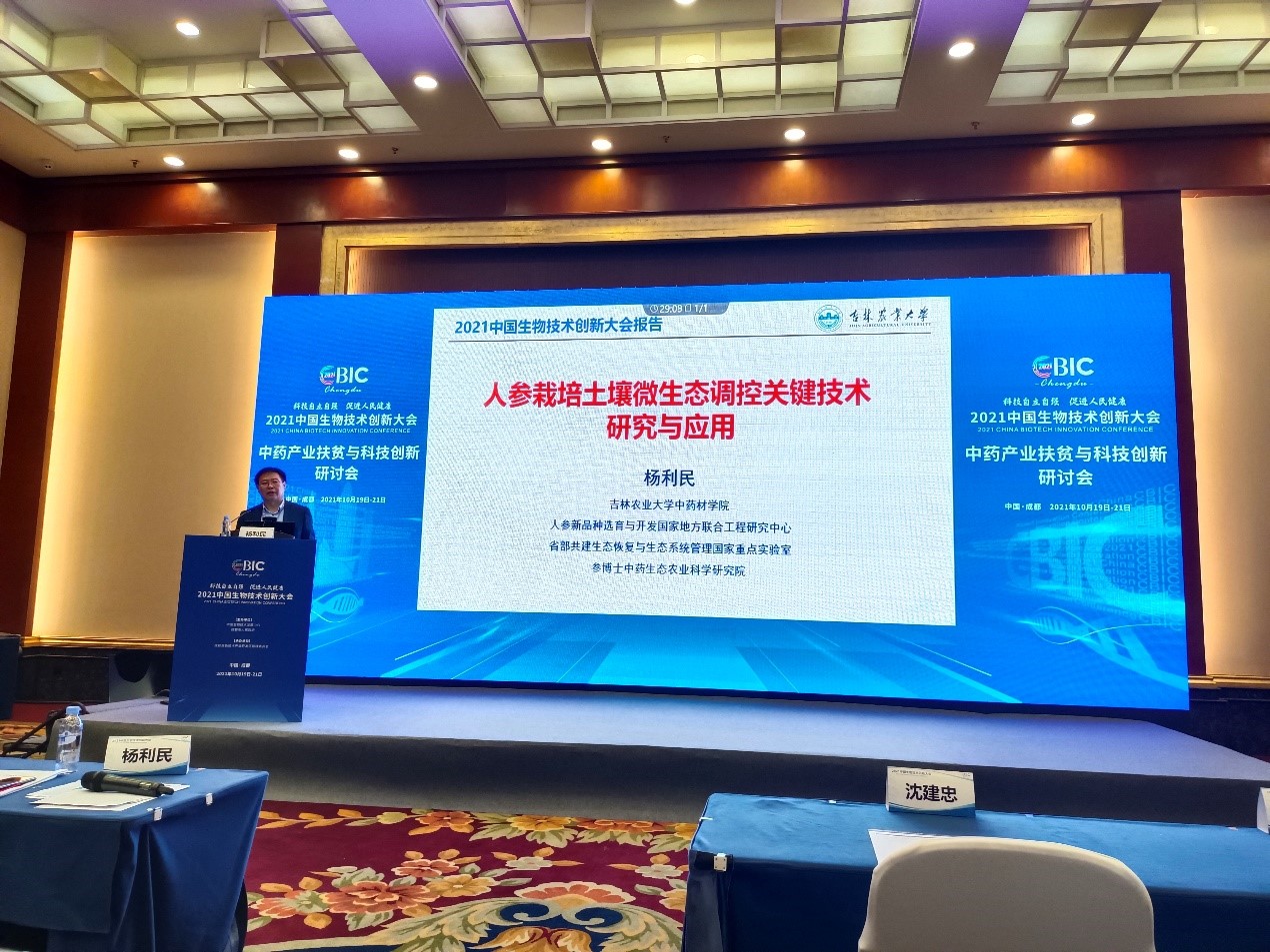 我校国家中药材产业技术体系岗位科学家、国家重点研发计划项目首席科学家杨利民教授参加了大会,并应邀全程主持了大会分会场“中药产业扶贫与科技创新研讨会”的学术交流活动。会上,杨利民作了题为《人参栽培土壤微生态调控关键技术研究与应用》的学术报告。