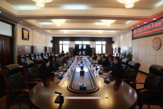 冯江代表学校向大使的来访表示欢迎,并详细介绍了学校的办学情况和与乌拉圭教育合作情况。他说,2018年乌拉圭留学生玛雅以中国政府奖学金生资格到我校留学;2019年4月,乌拉圭教育和文化部部长访问了我校;访问期间,学校与乌拉圭共和国大学签署合作谅解备忘录。冯江特别指出,吉林农业大学现代肉牛产业学院于今日正式揭牌,学校将围绕吉林省肉牛产业技术创新关键问题开展协同创新,推动应用科学研究成果的转化和应用,他希望大使能够充分发挥乌拉圭在肉牛生产等领域的优势,为我校现代肉牛产业学院的发展提供帮助。