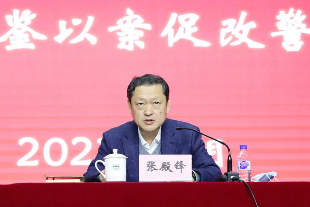 学校党委书记张殿锋作了讲话,他指出,警示教育片和近年来查处的全国换届典型案例、2021年高校领域部分领导干部严重违纪违法案件具有很强的典型性和教育意义,全校党员干部要从中深刻警醒、防微杜渐,增强拒腐防变的自觉性和坚定性,公正用权、依法用权、廉洁用权,努力营造风清气正的良好政治生态和教书育人环境。