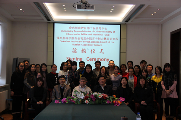 会后,双方还就联合开展食药用菌分类和区系研究、种质资源库建设、食药用菌遗传育种与栽培等菌物科学研究,以及研究生的联合培养等进行了讨论,并签署了《吉林农业大学食药用菌教育部工程研究中心与俄罗斯苏卡切夫林业研究所合作谅解备忘录》。伊戈·巴普洛夫还参观了我校食药用菌教育部工程研究中心实验室和菌菜基地,并赴工程中心提供技术支撑和进行项目合作的长春高榕生物有限公司进行了考察。