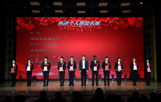 会上,通过事迹展播,授予颁奖词等形式对郭可盈等十名2020-2021学年“十佳大学生”逐一进行了表彰。对2020-2021学年“争先创优”活动中涌现出的十佳班级、先进本科生班级、先进研究生班级、优秀本科生寝室、优秀研究生寝室、优秀留学生寝室等174个学生先进集体代表,以及优秀本科生、优秀本科生学生干部、优秀研究生、优秀研究生干部、优秀留学生等475名学生先进个人代表进行了表彰。通过短视频《因为热爱,所以执着》展示了优秀辅导员先进事迹,并对2020年度优秀辅导员、学生工作“标兵学院”和“先进学院”进行了表彰。
