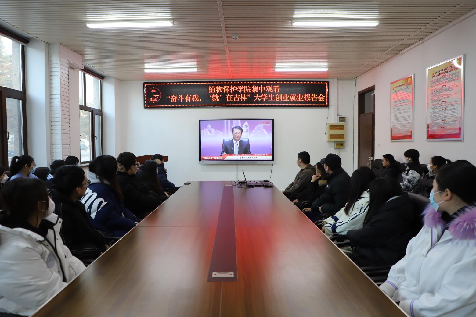 12月29日,省委书记景俊海在吉林大学出席“奋斗有我,‘就’在吉林”大学生创业就业报告会并讲话,视频连线全省高校为毕业生作宣讲报告,并向广大青年学子发出邀请,希望广大青年学子牢记习近平总书记殷殷嘱托,踊跃投身吉林振兴发展宏伟事业,在拼搏奋斗中建功立业、成就未来。我校设立多个分会场,组织师生通过线上方式集中收看学习,并抓好贯彻落实。