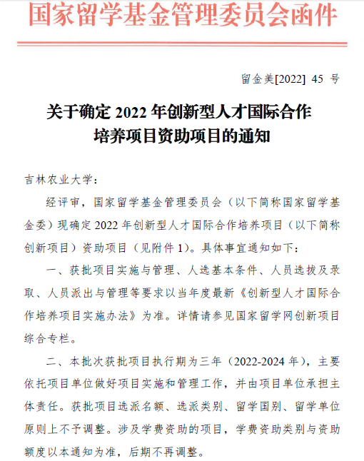 该项目由中药材学院牵头申报,外方合作院校为韩国忠北大学,瞄准国家中医药行业和大健康产业发展需求,聚焦学校学科建设需要,精准发力,突出“高精尖缺”人才培养中心地位,推动学校中药学学科建设。获批项目执行期为3年,国家留学基金资助项目人员往返国际旅费和资助期限内的奖学金。