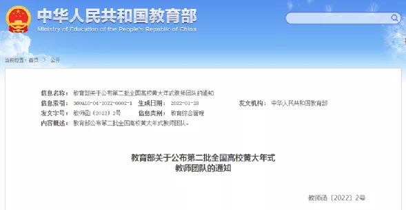 日前,教育部印发《关于公布第二批全国高校黄大年式教师团队的通知》(教师函〔2022〕2号),我校农产品精深加工教师团队入选第二批全国高校黄大年式教师团队,成为继2018年入选首批“全国高校黄大年式教师团队”的“植物病虫害绿色防控教师团队”之后的又一支入选团队。本次全国共入选来自200所高校的200个团队,吉林省共有3所高校3个团队入选。