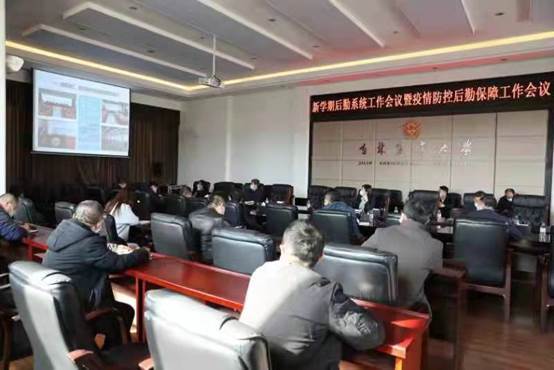3月7日,学校在行政楼中五楼会议室召开新学期后勤系统工作会议暨疫情防控后勤保障工作会议,会议由副校长董雅致主持。