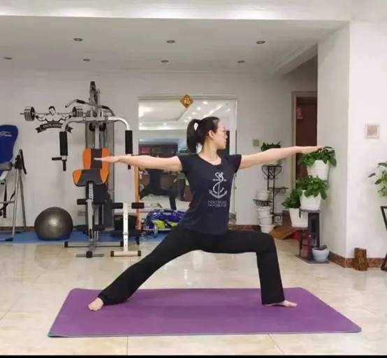 组织学生因地制宜,师生互动开展瑜伽练习。