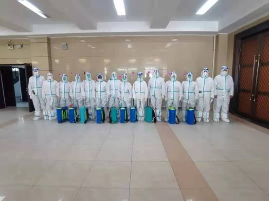 迎难而上勇担重任。消杀工作任务繁重、责任重大,学校绿化保洁服务中心和物业公司全体保洁人员在这个非常时期肩负起了消杀的艰巨任务,化身“白衣战士”在保证日常保洁卫生的前提下,每天对各公共区域开展全面消杀。
