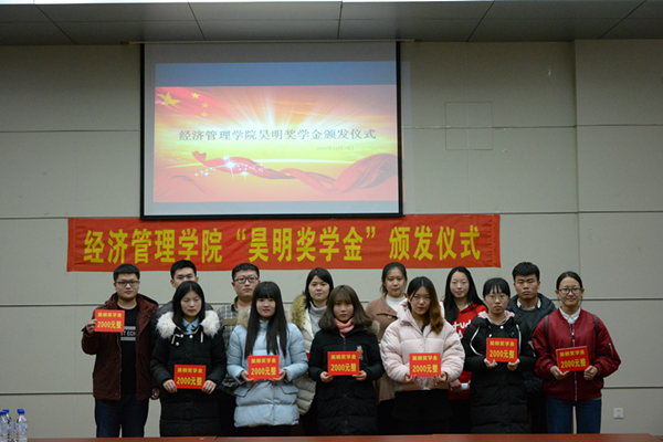 11月24日,经济管理学院“昊明奖学金”颁发仪式在十五号楼举行。