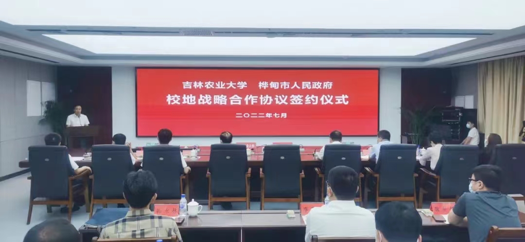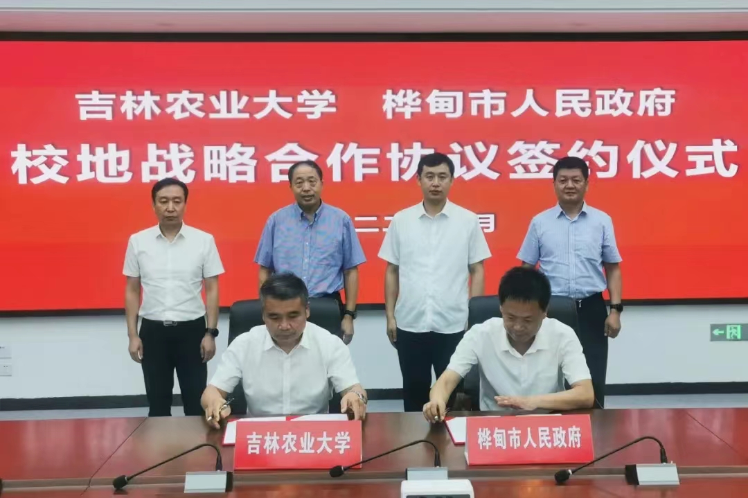 7月21日,吉林农业大学与桦甸市人民政府战略合作协议签约仪式在桦甸市举行。吉林省科协副主席穆晓东、桦甸市政府市长修立宇、市委副书记李亚南、副市长赵士华、吉林市科协副主席胡立业、学校副校长杜锐、吕文发出席签约仪式。