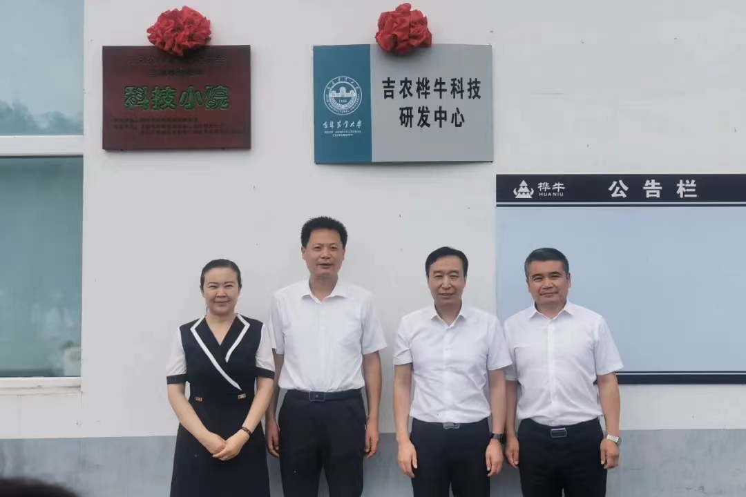 “吉农桦牛科技研发中心”是学校与桦甸市金牛牧业有限公司合作共建的校企合作横向科研平台,由学校吕文发教授担任中心主任,中心重点开展肉牛种质资源创新与利用、营养与饲料、疾病控制、粪污处理、肉品加工等肉牛全产业链的科技攻关和技术推广工作。“桦甸桦牛科技小院”是由学校依托桦甸市金牛牧业有限公司建设的,中国科协首个以肉牛产业为主的科技小院,2021年正式获批。“桦甸桦牛科技小院”以地方肉牛品种为研究对象,围绕新型饲料、新型兽药、肉牛新品种培育等开展科学研究和人才培养工作。