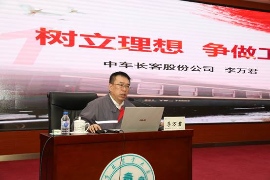会上,李万君作了题为《匠心筑梦 强国有我》的报告,从“树立理想 争做工匠”“无私奉献 培育工匠”“敢于担当 勇于创新”“忠诚企业 报效国家”“用匠心实现中国梦、高铁梦、个人梦”等五个方面,通过分享自身经历和成长路上的心得体会,讲述了自己从一名普通焊工成长为中国高铁焊接专家的不平凡历程。李万君持之以恒的精神、精益求精的追求和永不言弃的态度,主动将个人梦想融入实现中国梦的壮阔奋斗之中,勇于担当时代赋予的历史责任,让在场师生感受到了劳模精神、劳动精神、工匠精神的灿烂光芒,深受感动,备受鼓舞,倍感振奋。