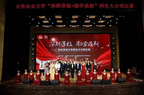 表彰活动结束后,吉林农业大学“深耕厚植 励学鼎新”师生大合唱比赛正式开始。本次活动的举办,旨在提高各学院的凝聚力和向心力,彰显我校青年学子昂扬向上、奋发进取的精神风貌,营造健康向上的校园文化氛围。经过激烈的角逐,最终,生命科学学院选送的《光荣啊,中国共青团》获得一等奖;人文学院、家政学院选送的《如愿》和经济管理学院选送的《美丽中国》获得二等奖;农学院选送的《思念》、植物保护学院选送的《二十年后再相会》、动物科学与技术学院、动物医学院选送的《鸿雁》、食品科学与工程学院选送的《远方的客人请你留下来》、中药材学院选送的《众人划桨开大船》获得三等奖。