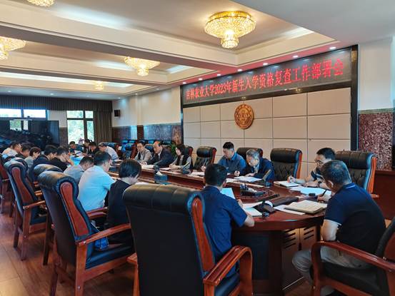 为切实做好2023级本科新生入学资格复查工作,9月14日上午,学校在行政楼中四楼会议室召开2023年新生入学资格复查工作部署会。会议由副校长刘景圣主持。