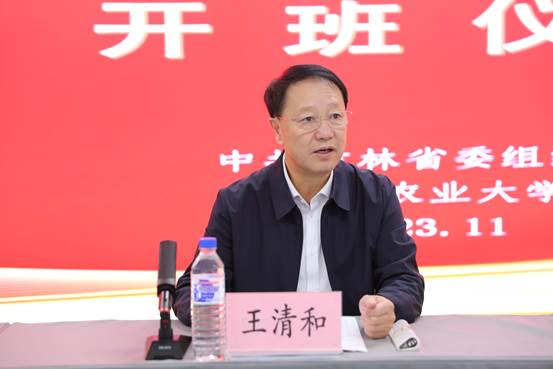 开班仪式上,王清和介绍了吉林农业大学的基本情况以及近些年学校在培训领域所取得的成绩,并勉励各位学员要积极学习新知识。他指出,在全面推进乡村振兴工作的新形势下,进一步促进乡镇党政负责人对产业振兴的认识与理解、思考与谋划,对推动我省农业现代化,加快实现吉林乡村振兴具有重要意义。