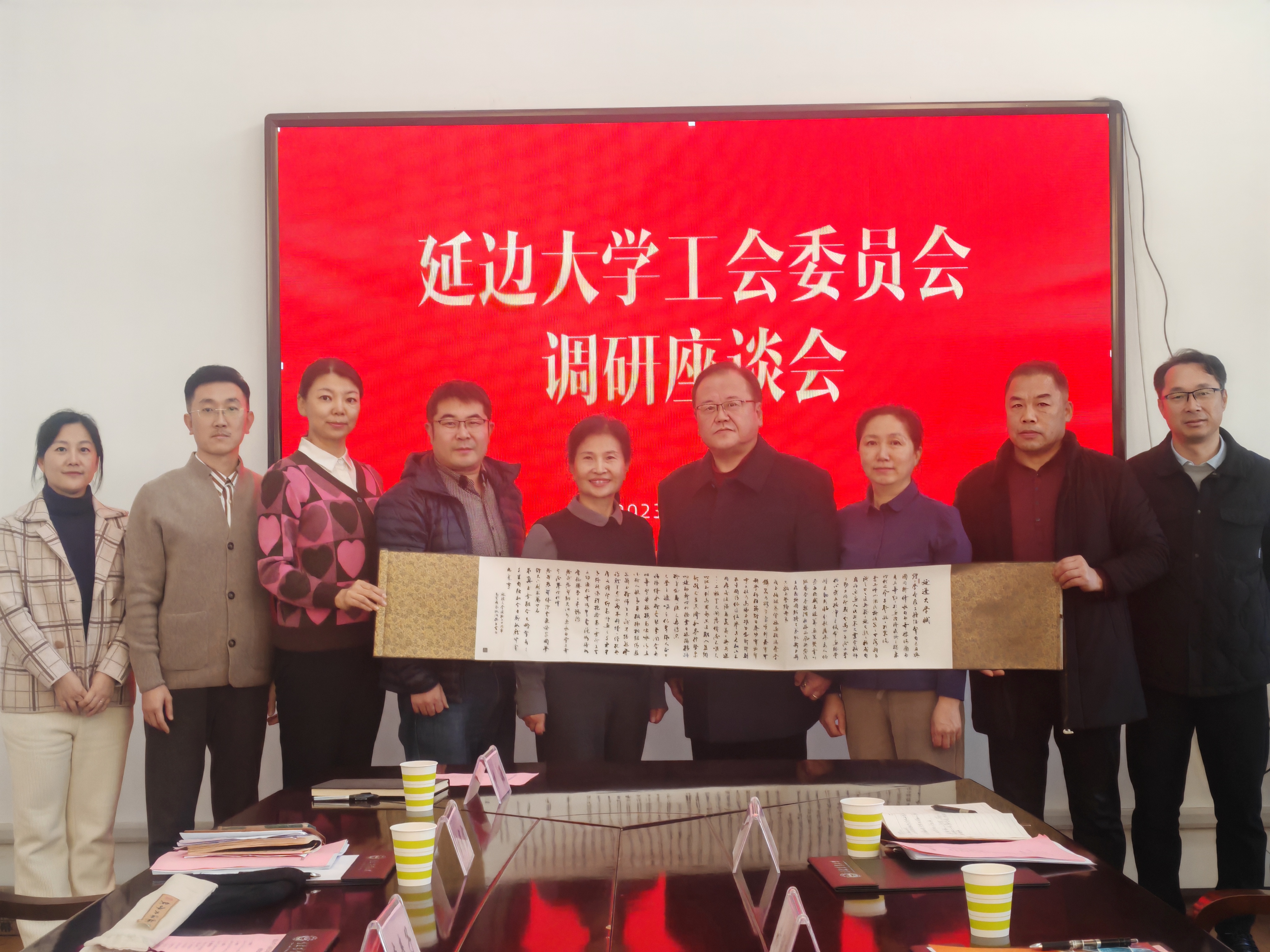 座谈会后,黄润浩向学校工会赠送“延边大学赋”。