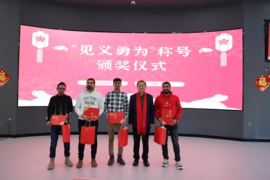 党委书记张殿锋为留学生颁发“见义勇为奖”